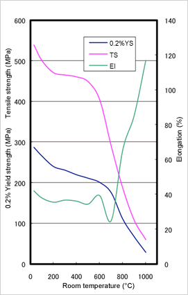 由于其NiCr含量高,因此在高温环境下对氧化以及渗碳的耐受性高,耐氧化性优于SUS 310S,甚至接近NAS 600。高温强度也基本与NAS 600相同。在使用过程中不会析出σ相而导致脆化,广泛应用于耐热用材料。