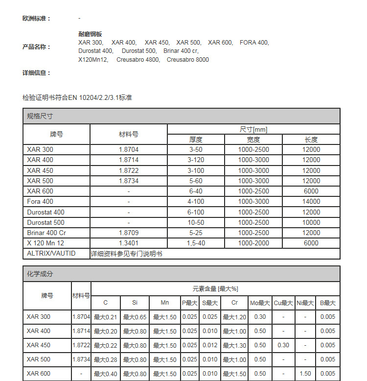 供应规格:薄板、中板、厚板、特厚板、及各种切割件