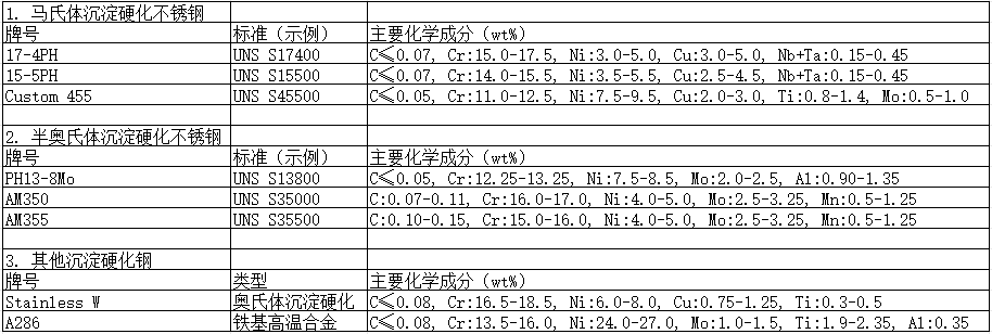 沉淀硬化钢需通过固溶处理+时效处理获得*佳性能。例如: