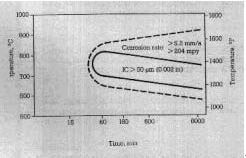 时间-温度-敏化曲线(含碳量0.008%,参照ASTM G28 方法A)