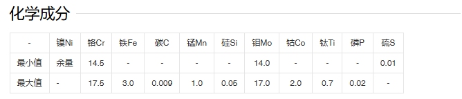 2、Hastelloy C-4(N06455)哈氏合金化学成分: