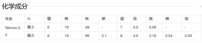 Nitronic 60 具有出色的抗高温氧化性和抗低温冲击性。 [1]